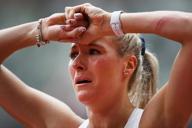VĐV người Anh vấp ngã ngay trước rào đầu tiên. Cô là VĐV duy nhất không hoàn thành bài thi ở vòng loại nội dung 400m vượt rào.