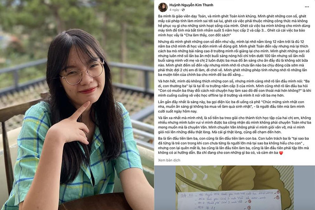 Thế nhưng, dù ghét Toán, Kim Thanh vẫn không bao giờ quên những con số liên quan đến ba. Em không quên 12 năm ba chở đi học, không quên số lần ba thức khuya đợi 2 chị em đi làm, đi chơi về.