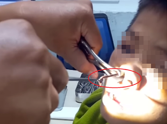 Tại đây, các bác sĩ thực hiện nội soi và phát hiện dị vật là một con vắt sống có chiều dài khoảng 7 cm trong khoang mũi của bà B. Sau đó, các bác sĩ đã gắp con vắt ra khỏi mũi bệnh nhân.