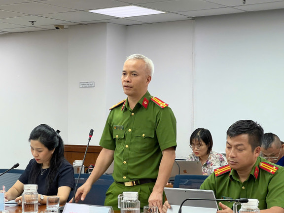 Thượng tá Nguyễn Văn Tùng - Phó Trưởng phòng PC07, Công an TP.HCM thông tin tại buổi họp báo.