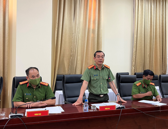 Thượng tá Trần Văn Hiếu, Trưởng Phòng Cảnh sát Hình sự Công an TP.HCM thông tin tại họp báo. (Ảnh: Hoàng Thọ)