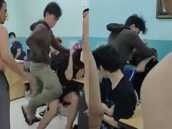 Sau đó, người này lao đến hành hung nam thanh niên khác bằng những hành động liên tiếp đấm, đá và cùi chỏ khiến em này bật khóc thì người đàn ông này mới chịu dừng tay.