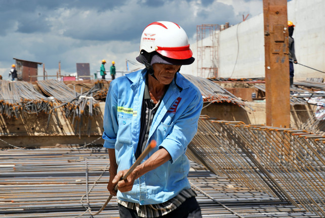 Công nhân "chạy đua" với thời gian để đưa dự án nút giao An Phú về đích đúng tiến độ.