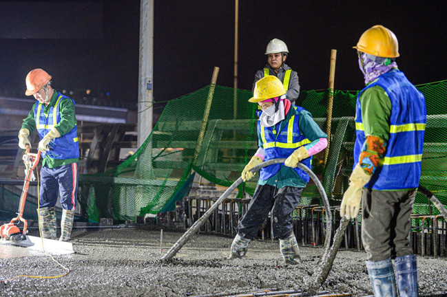 Công nhân xuyên đêm đổ bê tông cầu vượt trăm tỷ trong cái lạnh thấu xương