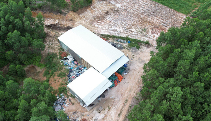 Ngày 24/7, theo ghi nhận của PV, trên khu vực đất rừng cạnh đường liên xã Hòa Khương, huyện Hòa Vang, TP Đà Nẵng (đoạn trạm xử lý nước thải Hòa Khương), khá nhiều diện tích đồi bị san lấp và nhà xưởng được xây dựng, bên trong có nhiều nhân công đang làm việc. Đáng chú ý, nhà xưởng này xây dựng ngay phía dưới đường điện 500kV, lại tập kết hàng hóa là cả tấn vải vụn nên tiềm ẩn nguy cơ mất an toàn rất cao.