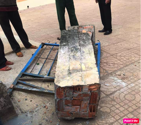 Cổng trường chỉ được xây bằng gạch, không có sắt thép bên trong.