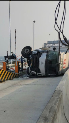 Trạm thu phí trên đường dẫn vào cao tốc Diễn Châu - Bãi Vọt bị container tông sập, khiến toàn bộ thiết bị hư hỏng, 1 nhân viên thu phí bị thương.