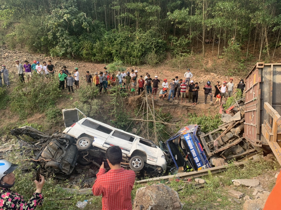 Sau đó, container tiếp tục va chạm với 3 ô tô chạy ngược chiều gồm xe ô tô BKS 74A-12659 do ông Nguyễn văn Biên (SN 1971, trú tại Tân Hợp, Hướng Hoá, Quảng Trị) cầm lái, trên xe chở 4 người; xe tải BKS 74D-00216 do ông Lê Văn Quang (SN 1972, trú phường 5, TP Đông Hà) điều khiển, trên xe chở 1 người; xe mang ô tô BKS 74A-02465 do Nguyễn văn Hải (trú tại Tân Kim, thị trấn Lao Bảo) cầm lái, trên xe chở 1 người.