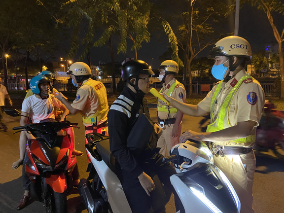 CSGT TP.HCM đo nồng độ cồn, người vi phạm than uống 2 chai bia phạt 4 triệu đồng