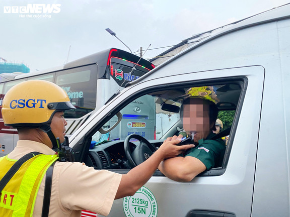 Sau hơn một giờ kiểm tra, lực lượng chức năng đã kiểm tra hàng chục trường hợp và phát hiện 5 lái xe vi phạm nồng độ cồn, lập biên bản xử phạt, tạm giữ xe. Trong đó, 3 trường hợp bị xử phạt kịch khung do vi phạm mức cồn cao ở mức 0,704; 0,425 và 0,597mg/lít khí thở.