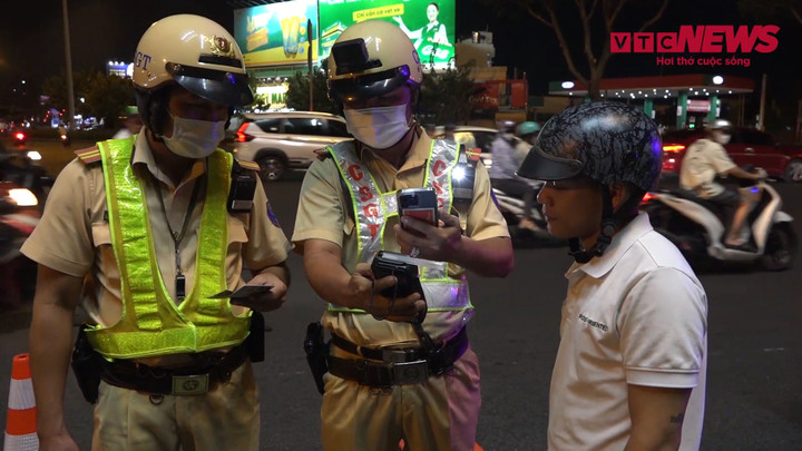 Tối 19/3, đội CSGT Hàng Xanh, Công an TP.HCM kiểm tra nồng độ cồn trên nhiều tuyến đường tại quận Bình Thạnh, kiểm tra ngẫu nhiên 10 người thì 9 trường hợp vi phạm.
