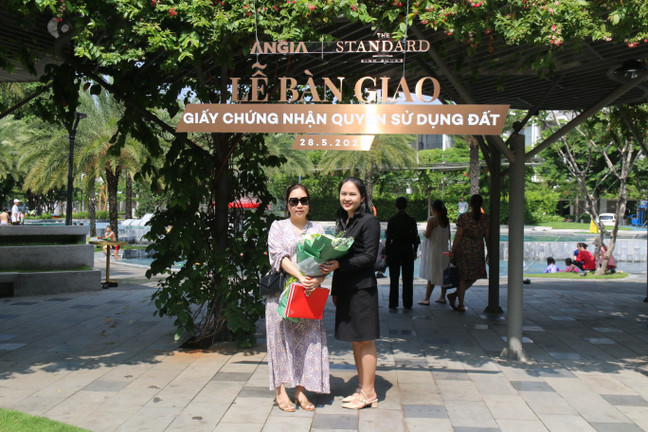 Đại diện An Gia trao sổ hồng cho cư dân The Standard.