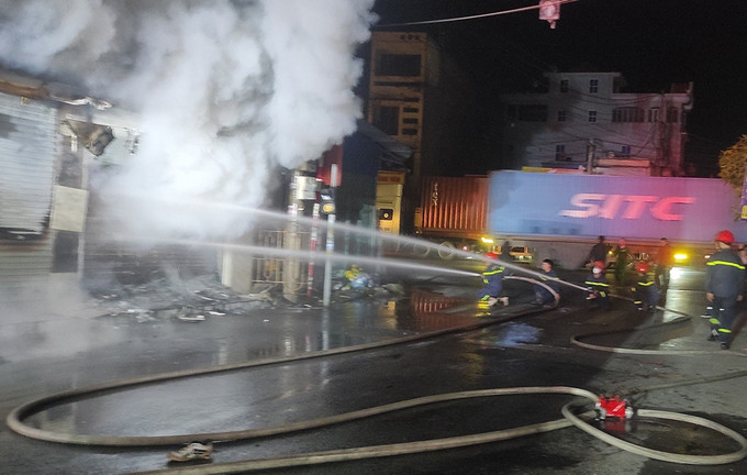 Vụ hoả hoạn xảy ra trong đêm 25/12, tại cửa hàng nhựa Tuyên Lan (huyện An Lão, Hải Phòng), ngọn lửa sau đó làn sang 2 hộ dân bên cạnh.