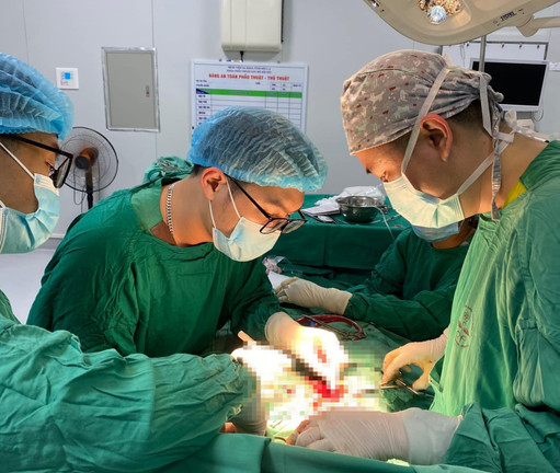 Tiên lượng chấn thương rất nặng, các bác sĩ chuyển bệnh nhi lên khoa Phẫu thuật gây mê - Hồi sức để phẫu thuật cấp cứu xử trí tổn thương bằng cách phẫu thuật khâu vết thương động mạch, tĩnh mạch đùi phải, phẫu thuật khâu vật hang do vỡ vật hang, cắt lọc tạo hình lại da dương vật và da che phủ bìu phải.