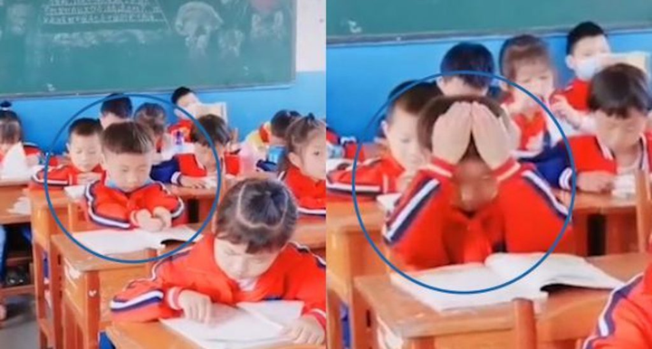 Cười ngất với cậu học trò dùng tay 'múc' kiến thức từ sách đưa lên đầu