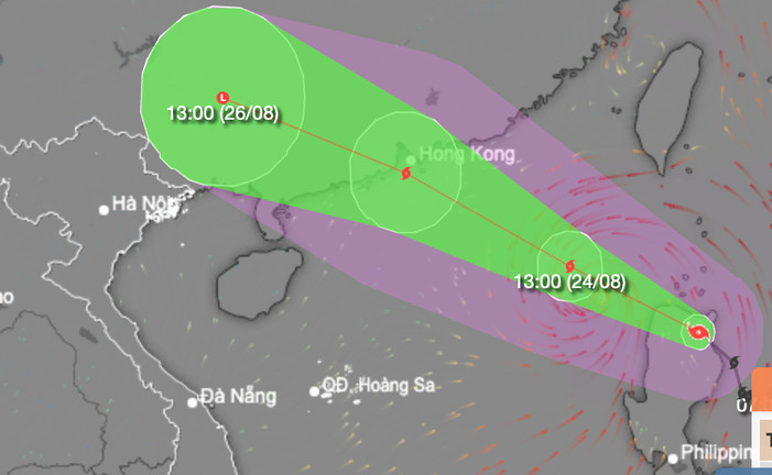 Đến 13h ngày 24/8, vị trí tâm bão trên vùng biển phía Đông Bắc khu vực Bắc Biển Đông, cách quần đảo Hoàng Sa khoảng 800km về phía Đông Bắc. Sức gió mạnh nhất vùng gần tâm bão mạnh cấp 10-11 (89-117km/giờ), giật cấp 13.
