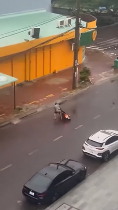 Cuồng phong bão số 13 Kalmaegi hất văng người đàn ông vào tường