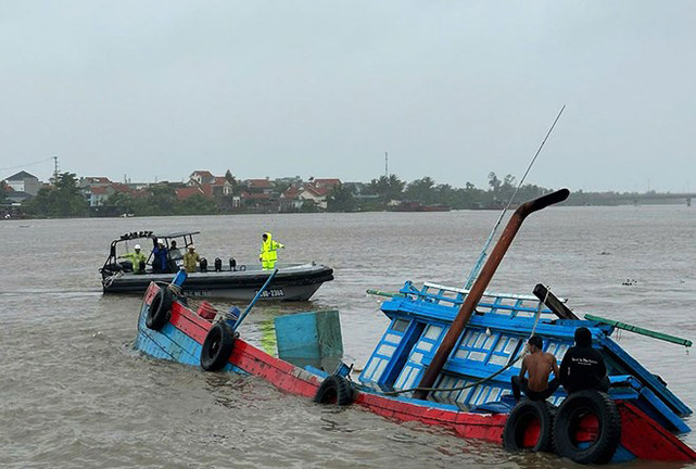 Cứu 9 ngư dân trên tàu cá bị chìm lúc về bờ trú bão Wipha