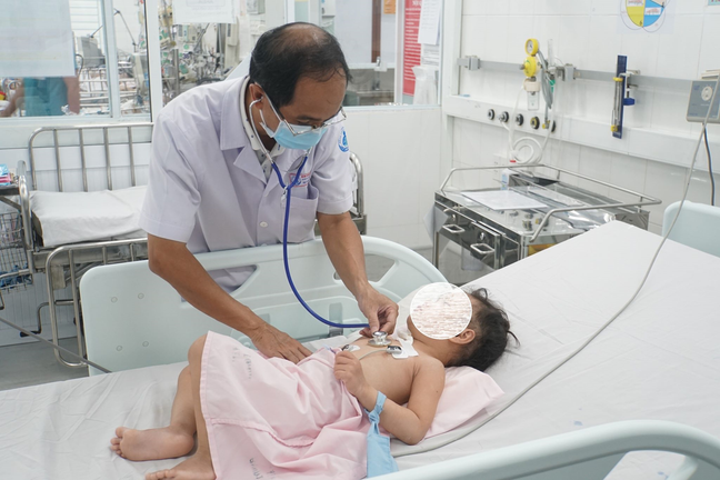 Hiện bé tỉnh táo, thở bình thường, tình trạng huyết động học ổn định, chức năng tim phục hồi tốt.