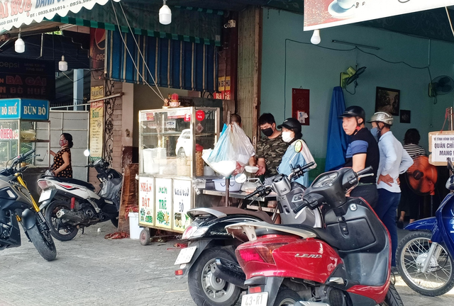 Trên một số tuyến đường thuộc quận Sơn Trà, Ngũ Hành Sơn, Hải Châu, các quán mì Quảng, xôi, phở, bún... có khá đông người đến mua. Phần lớn các chủ cửa hàng chấp hành quy định của thành phố, chỉ bán online và mang về. Tuy nhiên, quy định giữ khoảng cách tối thiểu 2m giữa người phục vụ với người mua, giữa khách với khách vẫn chưa được tuân thủ nghiêm túc.