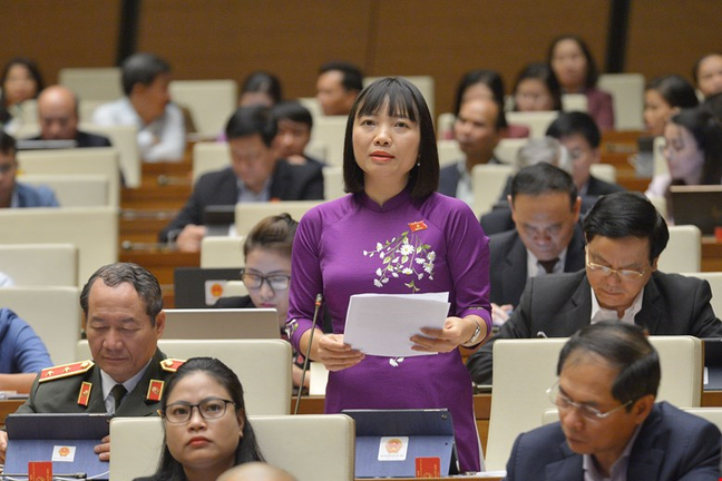 Đại biểu Nguyễn Thị Việt Nga - Đoàn đại biểu Quốc hội tỉnh Hải Dương, phát biểu tại phiên thảo luận.