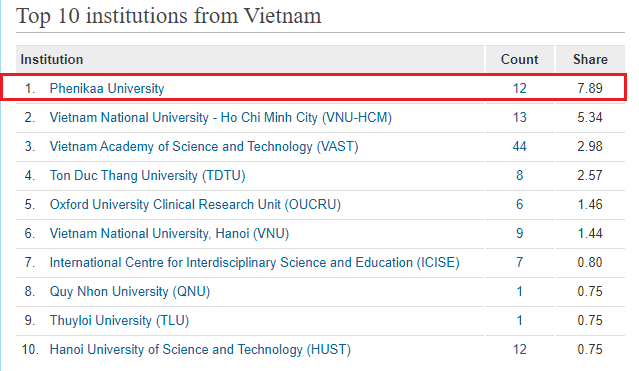 Đại học Phenikaa đứng đầu các trường ở Việt Nam trong bảng xếp hạng Nature Index