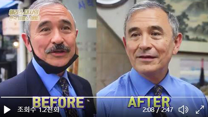 Video: Đại sứ Mỹ đi cạo bộ ria mép gây phẫn nộ tại Hàn Quốc,