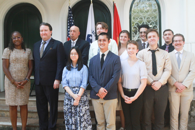 Đại sứ Mỹ Marc Knapper, đại diện Peace Corps cùng các tình nguyện viên.