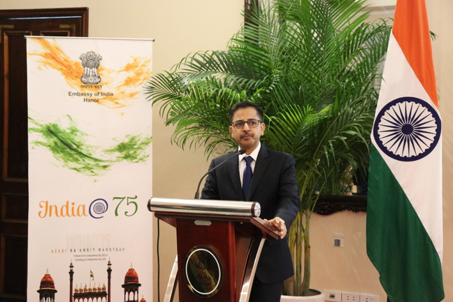 Đại sứ Verma đồng thời nêu bật những đóng góp tích cực của Ấn Độ trong cuộc chiến toàn cầu chống lại đại dịch COVID-19 thông qua việc cung cấp thuốc cho gần 150 nước và vaccine "Made in India" cho hơn 80 quốc gia toàn cầu.