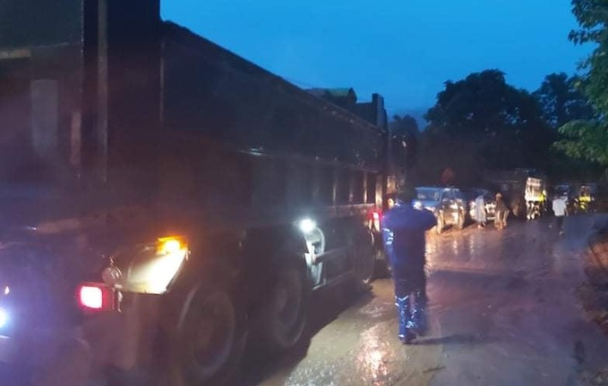 Tuyến đường giao thông bị ách tắc dẫn vào hiện trường vụ sạt lở vùi lấp 22 cán bộ, chiến sĩ Đoàn kinh tế Quốc phòng.