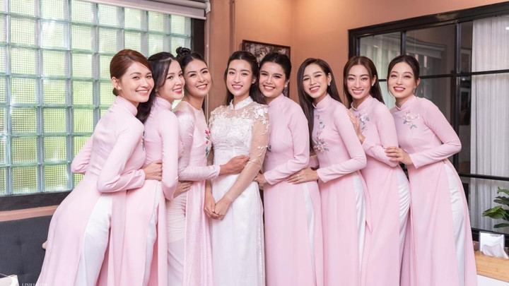 Chính thức lên xe hoa vào ngày 21/10, Á hậu Phương Nga vẫn có mặt trong ngày vui của Hoa hậu Đỗ Mỹ Linh. Đặc biệt hơn khi Đỗ Mỹ Linh và Phương Nga thay phiên bê tráp cho nhau.