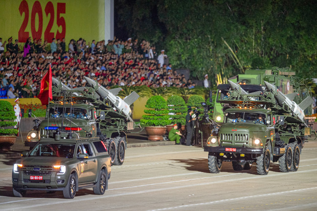 Lần đầu tiên dàn khí tài của Viettel gồm nhiều vũ khí hiện đại như tổ hợp tên lửa Trường Sơn, S-125-VT, UAV trinh sát, cảm tử… trình diễn tại Quảng trường Ba Đình.