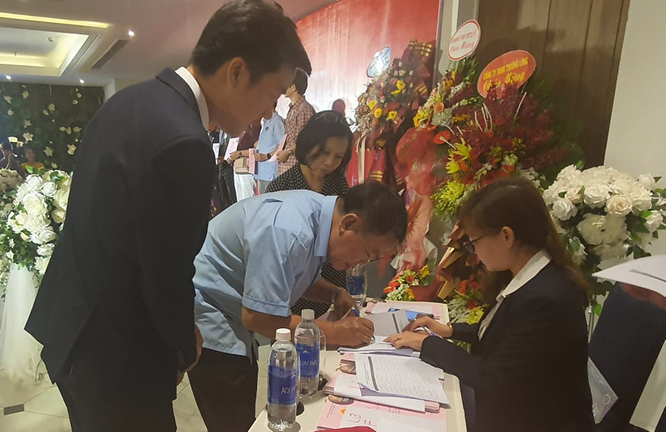Những khách hàng đầu tiên của dự án Khu đô thị mới Đông Nam Thuỷ An ký nhận giấy chứng nhận quyền sử dụng đất sau hơn 10 năm mòn mỏi chờ đợi. (Ảnh: Nguyễn Vương).