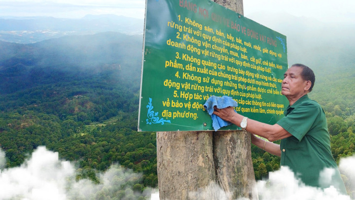 Già Ha Giản đã ở cái tuổi 65, nhưng bàn chân ông vẫn cứng như gỗ lim, đôi mắt vẫn sắc như mắt hổ. Hàng chục năm qua, già một mình theo dõi các dấu hiệu tàn phá rừng, sau đó báo cáo và phối hợp với chính quyền, bà con ngăn chặn.