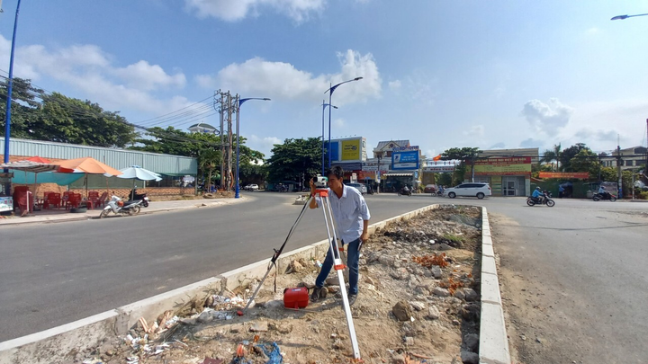 Sau khi người dân phản ánh, nghi ngờ việc thi công đường nối CMT8 đến đường tỉnh 918 chưa đạt độ cao như thiết kế, cơ quan chức năng cho đo lại cao trình đường.