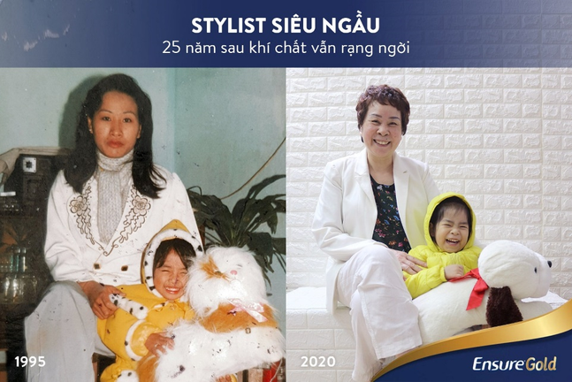 Giữa hai khung hình xưa và nay, phong độ của mẹ vẫn vững vàng như vậy, chỉ có tình yêu và những chăm sóc ân cần được nhân lên và san sẻ từ con sang cháu mà thôi.