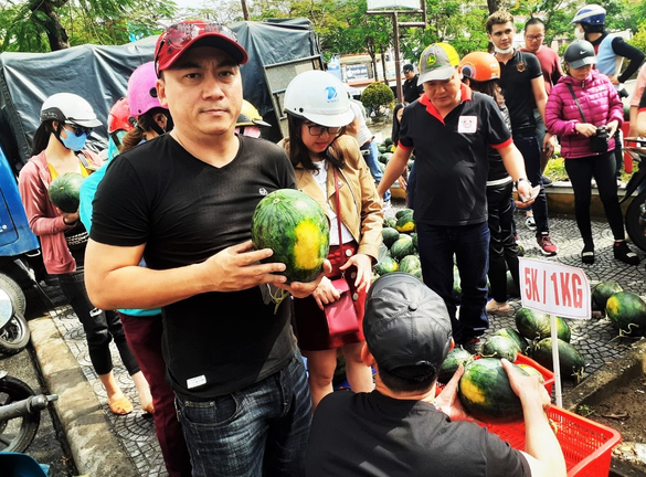 Người dân cùng du khách ở phố cổ Hội An mua dưa hấu để giúp nông dân Tây Nguyên.