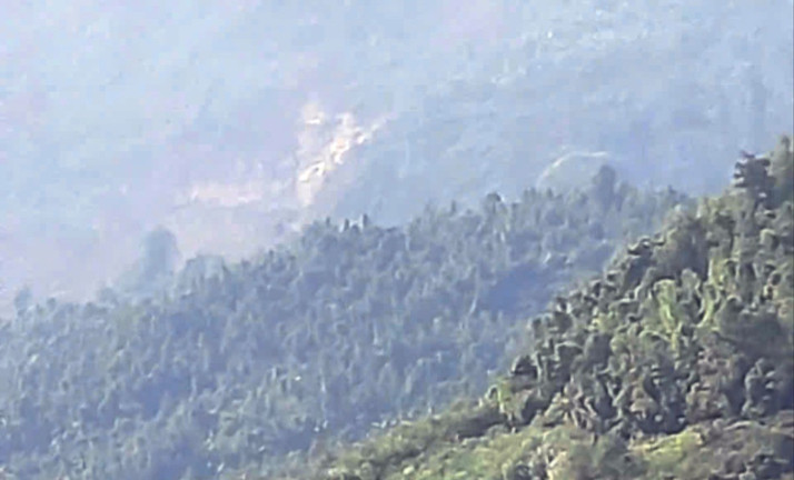Khu vực người dân phát hiện tiếng nổ lớn trên đỉnh núi Làng Nủ. (Ảnh: Đ.X.)