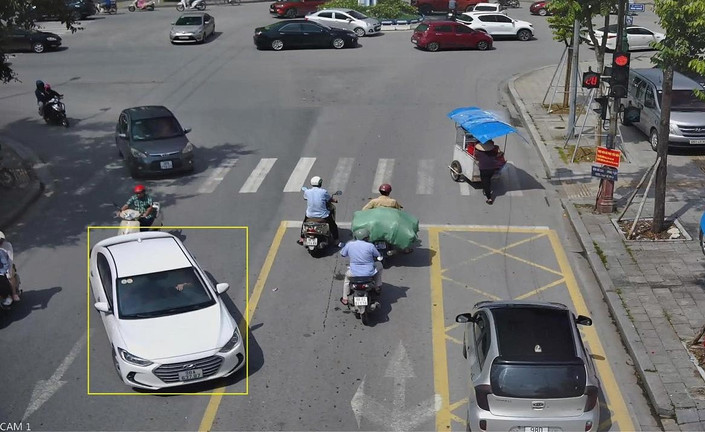 Xe tô tô vi phạm hiệu lệnh vạch kẻ đường. (Ảnh Công an Bắc Ninh).