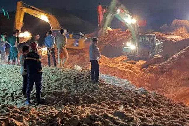 Mỏ titan Nam Suối Nhum ở huyện Hàm Thuận Nam, tỉnh Bình Thuận bị hàng chục ngàn m3 cát đổ ập xuống công trường khiến 4 công nhân bị vùi lấp.