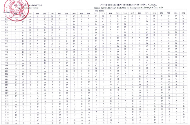 Đáp án chính thức 24 mã đề môn Giáo dục Công dân thi tốt nghiệp THPT 2023.
