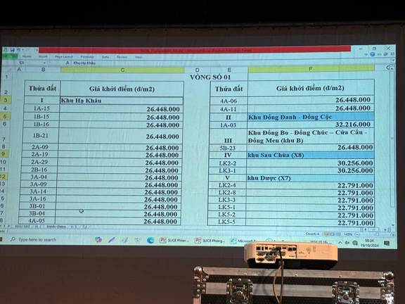 Phiên đấu giá bắt đầu sáng ngày 19/10 với 212 nhà đầu tư tham dự. Cuộc đấu giá tổ chức bỏ phiếu nhiều vòng, tối thiểu 5 - 11 vòng với bước giá 10 triệu đồng/m2.