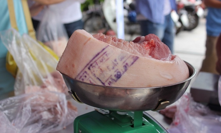 Mua phải miếng thịt có đóng dấu kiểm định trên da, nhiều người băn khoăn không biết dấu kiểm định trên thịt lợn có độc hại không, có cần cắt bỏ miếng da đó không.