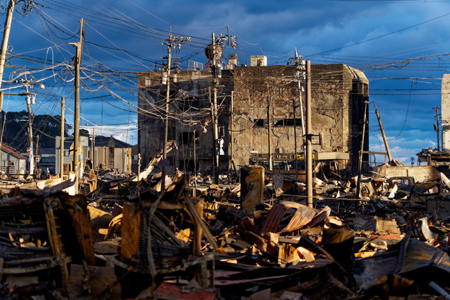 Cảnh tàn phá sau động đất tại thành phố Wajima, tỉnh Ishikawa, Nhật Bản, ngày 4/1/2024. (Ảnh: THX/TTXVN)