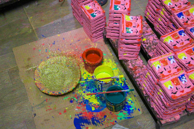 Tượng sau khi nung để nguội thì sẽ được nhúng vào sơn nền màu hồng chuyên dùng cho đất nung hoặc sơn màu đỏ đậm. Cuối cùng là được những người dân vẽ màu thủ công và thêm bột kim tuyến lấp lánh.