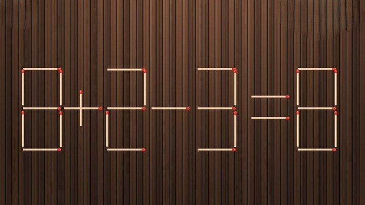 Di chuyển 1 que diêm để phép tính 8 + 2 - 3 = 8 từ sai thành đúng