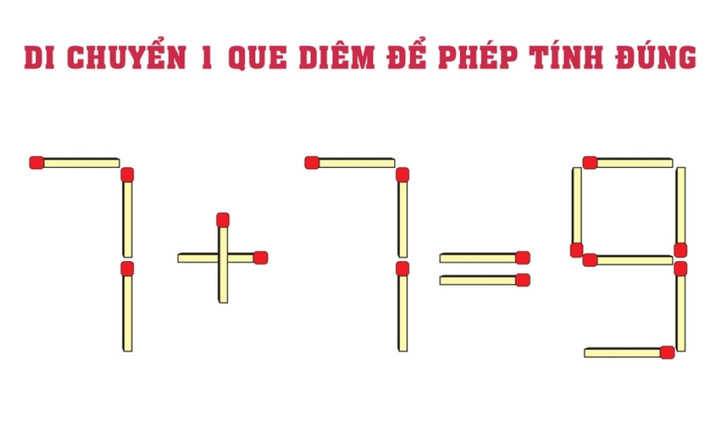 Bài toán đưa ra phép tính sai và yêu cầu bạn hãy di chuyển 1 que diêm để phép tính đúng.
