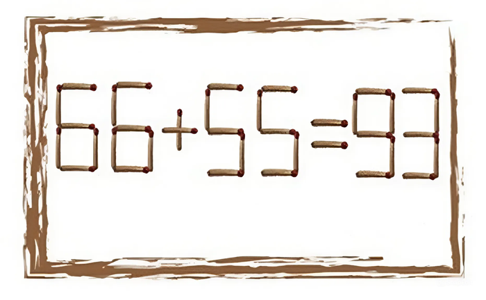 Mạng xã hội xuất hiện câu đố toán học di chuyển que diêm thu hút nhiều người tìm lời giải. Cụ thể, các que diêm được sắp xếp thành phép tính sai 66 + 55 = 93, nhiệm vụ của người giải di chuyển 2 que diêm để tạo ra phép tính mới đúng với quy tắc toán học. Lưu ý, dấu bằng (=) phải được giữ nguyên.