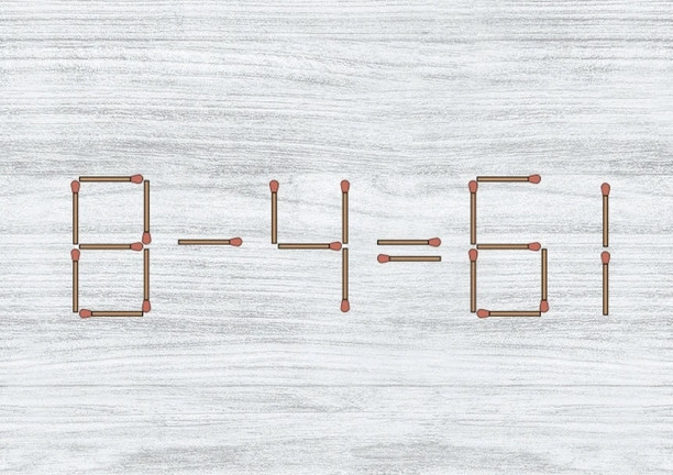 Di chuyển que diêm để phép tính 8 - 4 = 61 từ sai thành đúng
