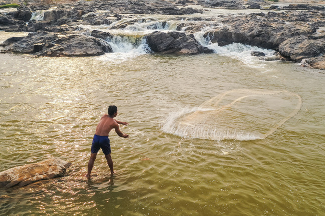 Người làng Kon S’kôi, xã Đăk Ruồng, huyện Kon Rẫy chài lưới đánh cá bên ghềnh đá